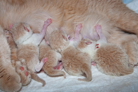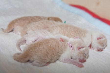 Am 8. August 2010 hat unsere Belinda 5 hübsche Kitten bekommen. Die Geburt war nicht einfach, aber Mama & Babies haben alles gut überstanden. Und wir auch. :-)