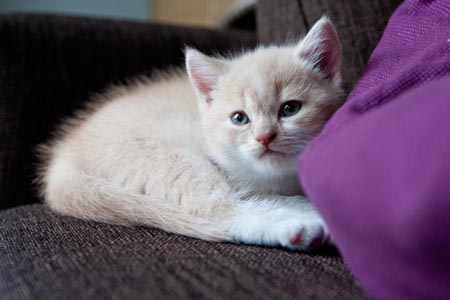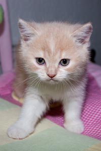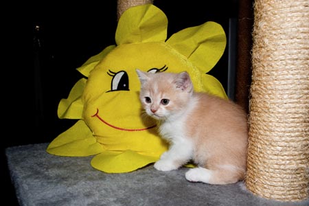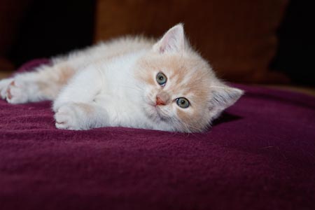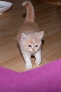 Sie ist ein ganz ruhiges liebes Mädchen. Ach, sie hat so ein süßes Gesichtchen, man möchte sie immer nur drücken. Sie kommt immer gleich zu uns und schmiegt sich in die Hand und schnurrt.