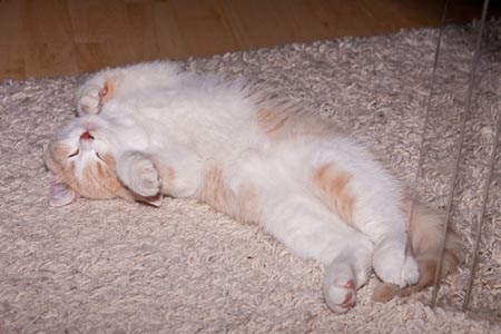 Er ist ein unglaublich liebes Kerlchen. So ein richtig kleiner Charming-Prince!!! Er sucht immer unsere Nähe und liegt zu unseren Füßen (die mag er sehr :-)! Er ist sehr sanft und liebenswert, man muß ihn einfach lieb haben!!!